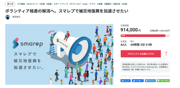 このクラウドファンディングの達成は、私だけでなく、応援してくださっている方や、支援がなかなか受けれず復旧が進んでいない地域や人にとっても重要なものだと考えています。