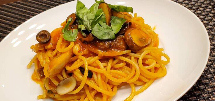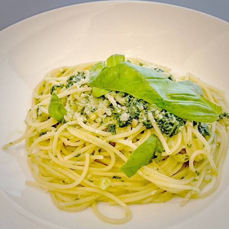 ペースト状にすればバジルの香り高さ・甘さを五感で感じる事が出来ます。例えばジェノベーゼパスタは、温泉バジルをペースト状にしたものを加え、仕上げに温泉バジルを乗せると、見て華やか、美味しい一品に仕上がります。