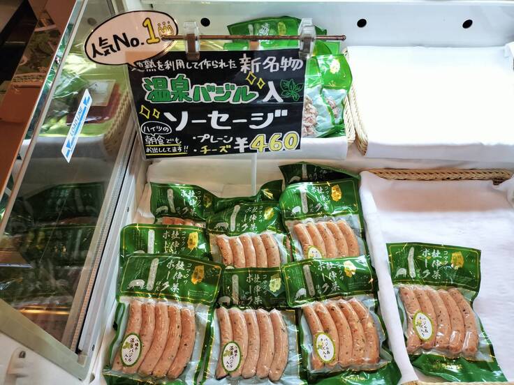 八幡平スマートファームの温泉バジルは、日本で初めて商用稼働した松川地熱発電所の温泉熱と最新のIoT技術で作られるから、香り高くて肉厚でぷりっぷり、だから、どんな商品にでもマッチしてしまうのです。温泉バジル入りソーセージ、八幡平ハイツ様で食べる事も買う事も出来るのでぜひ♪朝食のバイキングにも出てきますよ~^^とっても美味しいです!!