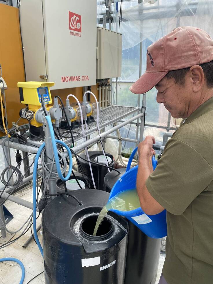 この八幡平スマートファームの男性スタッフ、実はテレビにも出演させて頂いたこともございます。肥料を補充しているところです!!^^なかなか見れない光景ですよ^^~