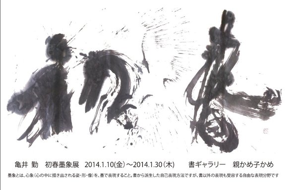 そんなことを考えながら、2014年1月10日から30日に開催する、初春墨象展の作品を制作していました。案内はがきも完成しましたのでご紹介します。