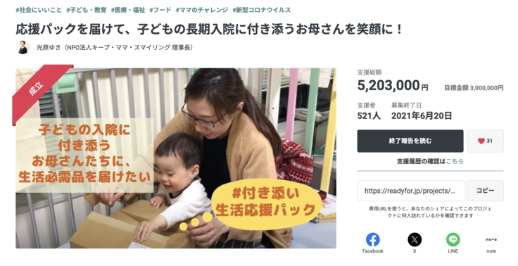 私たちも小児病棟わくわく応援団の一員として、みんなで連携して、少しでも多くの長期療養中の子ども達やきょうだい、家族が笑顔になれるお手伝いをできたらと思い、このクラウドファンディングを応援しています!