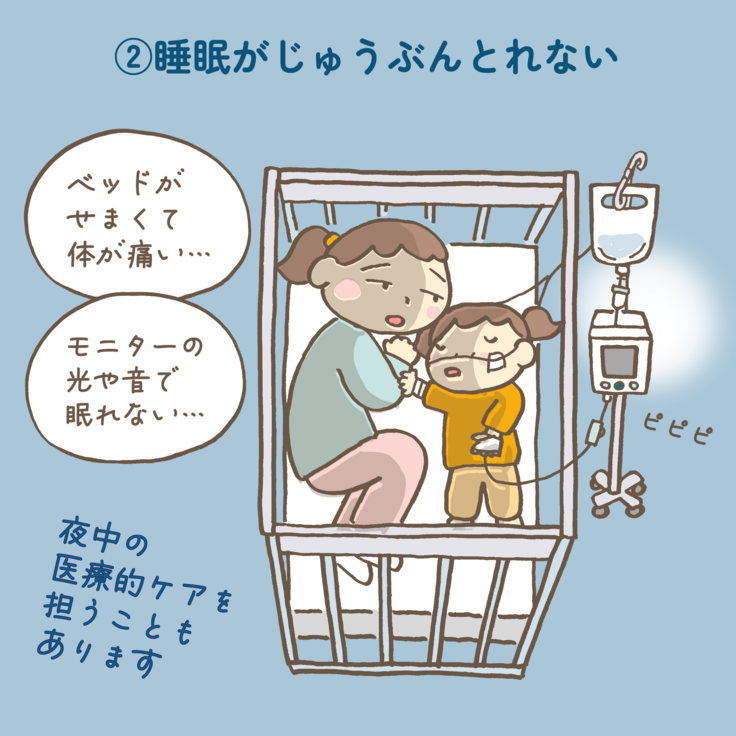 子どもが入院すると、多くの親は一緒に病室に泊まり込み、身の回りの世話やケアを行うことになります。