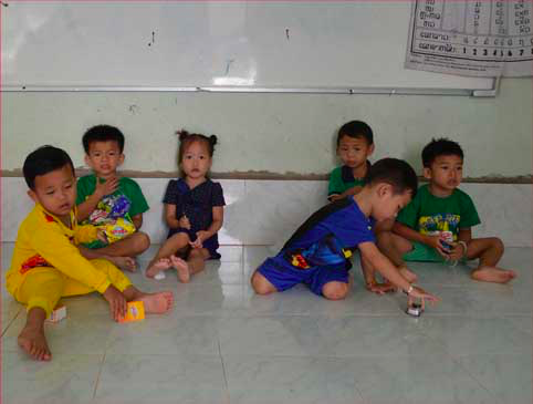 ラオス人の友人宅で食事をしているときに、5才と7才の娘が自宅の中でいつも遊んでいることに気付きました。