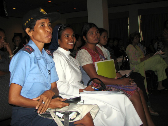 「11月26日(月)、東ティモール国家警察は、女性警察官が全体の18%、596名であることを発表した。東ティモール国家警察ジェンダー局、局長補佐官ウンベリナ ソアレス氏は『われわれ東ティモール国家警察の女性登用実績は、他国と比較してもかなり良いものだ』と話した」