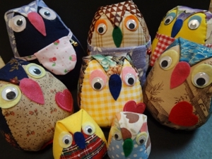 「どどすけオッホー」とは岩手の言葉で、「ふくろう」という意味です。この、ぬいぐるみの中には、おもりとして小石が入っています。この小石は大槌の子供たちが3.11を忘れないためにと、釜石の河原で石ひろいをして集めたものです。