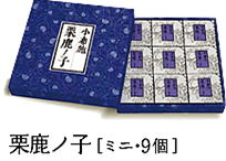 今回は、栗鹿ノ子ミニ(9個)としましたので、たっぷりとご賞味いただけます。