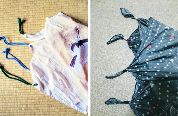 息子は中学生になってからでしたが、小学校から風呂敷に体操服を包む学校では、保護者が子どもに合わせて結びやすいように対角線上の角に紐を足したり、色分けしたりという工夫をすることが多いようです。