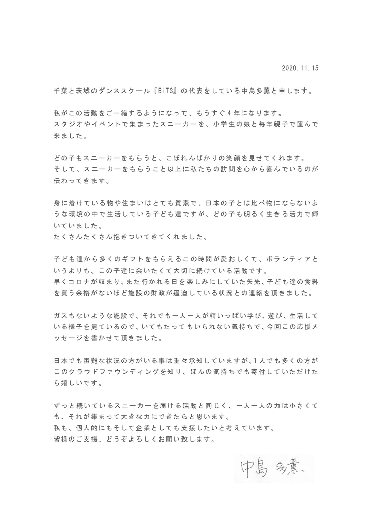 今後もスニーカーは集め、スニーカーを届ける活動は続けてまいります。