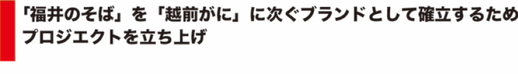 そこで、2024年春の北陸新幹線・敦賀開業を見据え、福井ブランドのそばの魅力を全国に発信することで、福井のそばを目当てに訪れる県外客の増加に貢献し、課題解決の一助となるべくプロジエクトを立ち上げました。