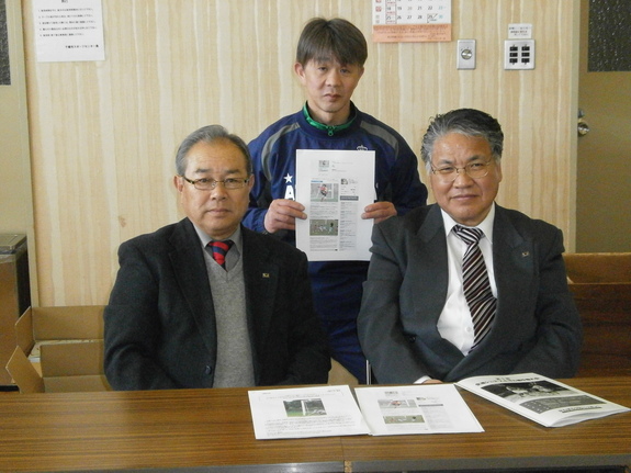 来賓でいらした北海道シニアサッカー連盟の石塚会長(左)と開催地千歳地区サッカー協会の細川理事長に支援のお願いをし、快諾をいただきました。ほかにも多くのチームから応援の声を頂きました。多くのサッカー仲間に支えられ、何としても達成させたいです!