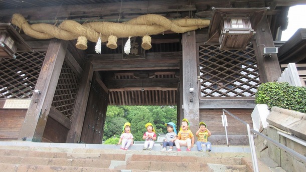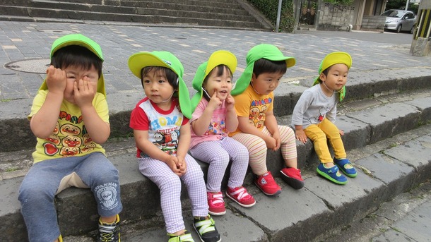 一見ただの保育園のお散歩ですが、坂や階段を負荷をかけながら登る運動で、特に「体幹」部分を鍛え、お友達と一緒に登ることで「協調性」、遅れてくるお友達を待つことで「やさしさ」と、「我慢」を養うことができます。