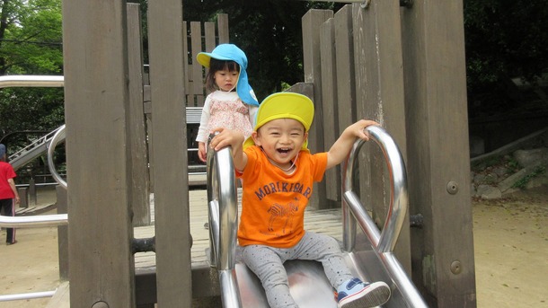 今日も「長坂」と言われる参道を笑顔で駆け上がり、諏訪神社隣の長崎公園で、たくさん遊んできました。