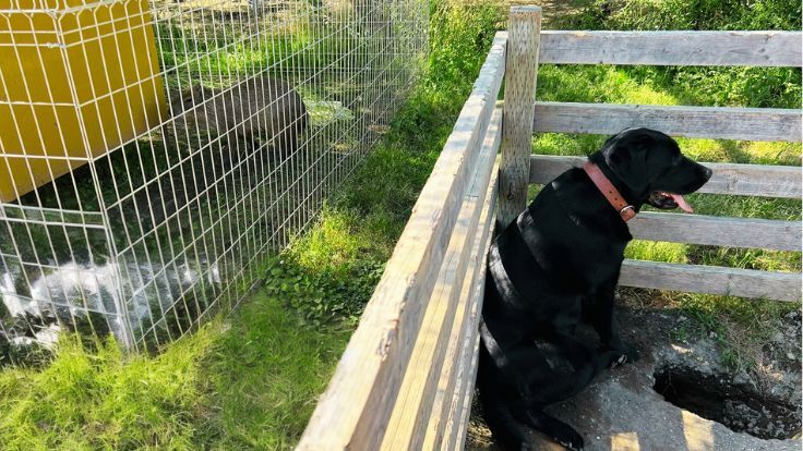 赤ちゃんの頃からずっと一緒だった看板犬のラブラドール・レトリーバー、「けんじ」お兄ちゃんが隣にいてくれるので寂しくはなさそうですが…。