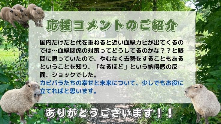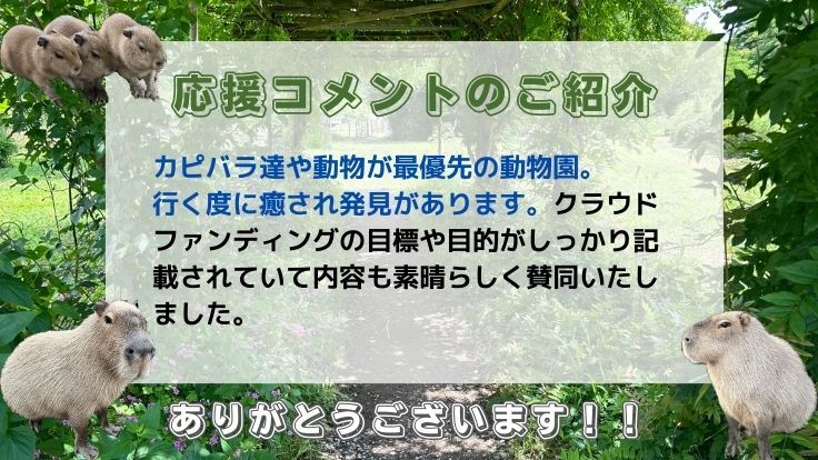 クラウドファンディングの振り返り、工事の詳細や見通し、現在のカピバラや他の動物たちの様子などのご報告を含む懇親会を私たち主催者と皆さんとで開きたいと思います。