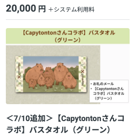 <20,000円のコース>【Capytontonさんコラボ】バスタオル(グリーン)