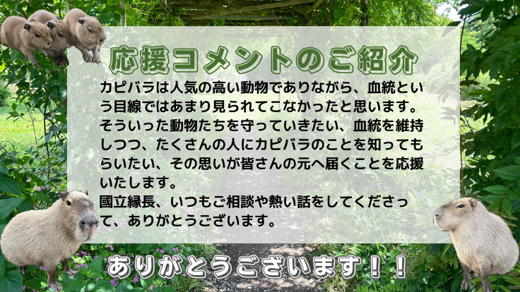 クラウドファンディングの振り返り、工事の詳細や見通し、現在のカピバラや他の動物たちの様子などのご報告を含む懇親会を私たち主催者と皆さんとで開きたいと思います。
