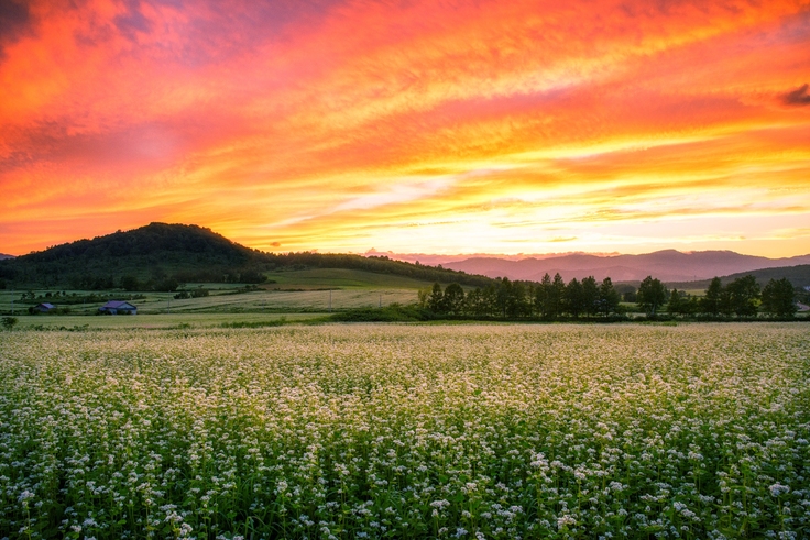 1970年代(昭和40年)代に米の減反政策が始まり、米の代替作物としてそばの作付けが本格的に行われるようになりました。幌加内町の冷涼な気候、昼夜の寒暖の差、日中の気温上昇を穏やかにする朝霧などの自然条件がそば栽培に適していたこと等から作付面積が増え、1980年(昭和55年)に日本一になりました。今では、作付面積が3,200ヘクタール、生産量も2,900トンを超えるほどになりました。2019年までは毎年開催されていた幌加内そば祭りは2日で5万人が来場する北海道を代表する食のイベントとして有名です。