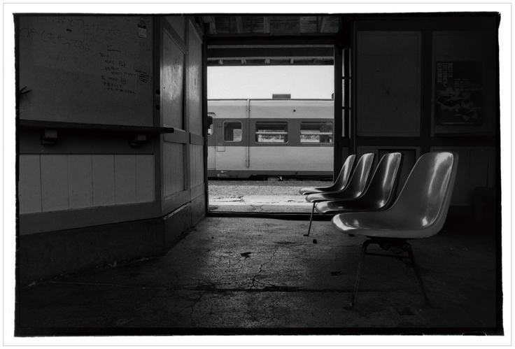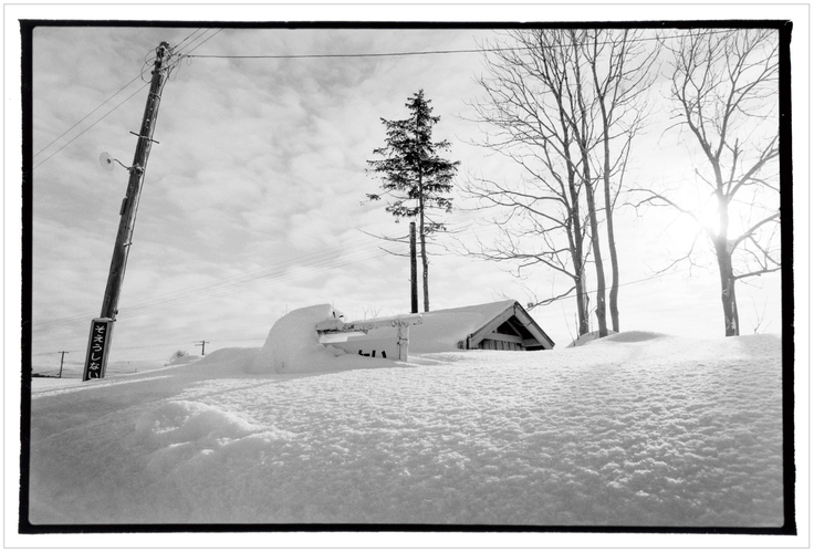待合室で一人列車を待つ乗客。豪雪に埋もれ、わずかに顔を出す駅名板。マイナス35度の中を行く深名線一番列車。誰もいない深名線待合室の情景。踏切を通過する最終列車。