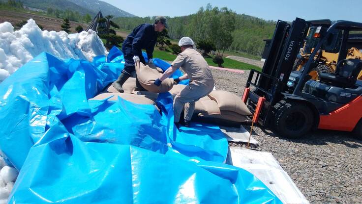 ロータリーという、大型の除雪機で雪を山高く積み上げ、半年間雪の中に保存します。埋まっている写真がない💦ので、自然に山高く積まれた幌加内の雪を乗せます(笑)