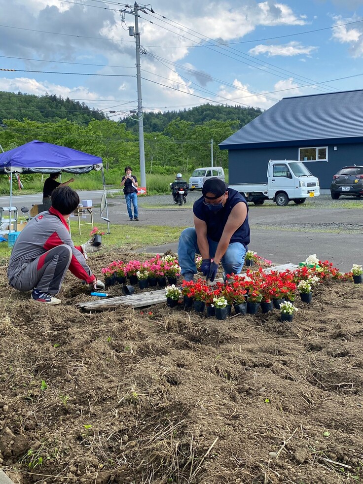添牛内自治区の次期リーダー仙丸さんによる花壇の土おこし