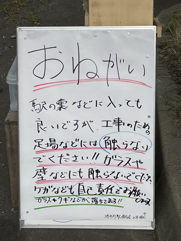 また、9月5日が工事が始まります。それまでは写真のように足場があったり道具が置いてあります、近づいて写真を撮るなどしてもよろしいですが、工事に関するものを触ったり移動したりしないでくださいよろしくお願いします。