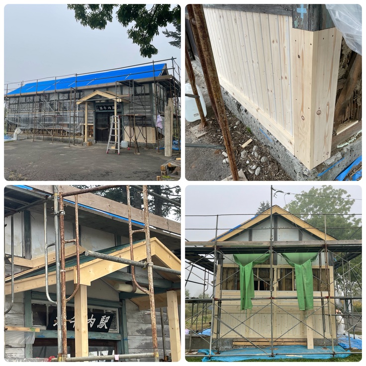 添牛内駅の修繕は、土台の改修、外壁の修繕、屋根の張り替えと順調に進んでおります。