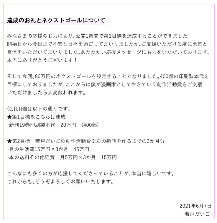出版社の後ろ盾がない僕は、読者の方から直接支えていただく必要がどうしてもあります。