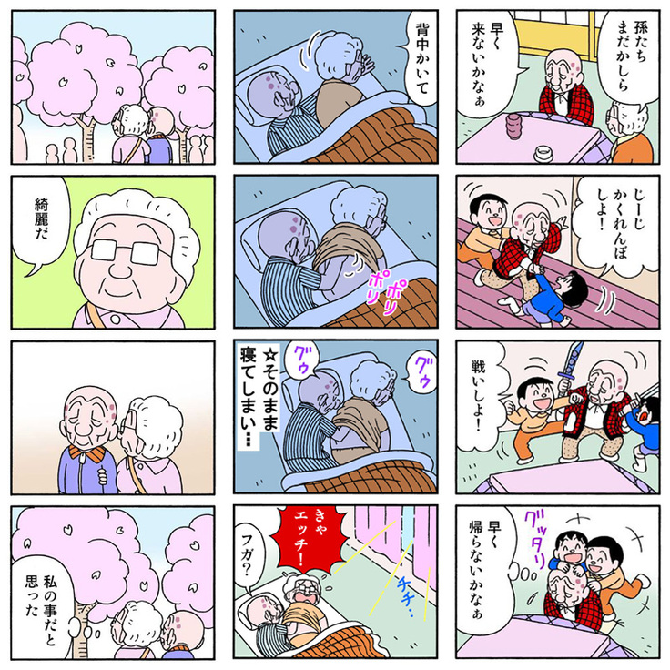 仲むつまじい老夫婦と、2人を取り巻く高齢者仲間やその家族らの日常をユーモアたっぷりに描いた作品です。高齢の田中徳男と、妻・春子が主人公。ほのぼのとした日々の暮らしをはじめ認知症や終活、入院生活など高齢者が直面するさまざまなテーマを取り上げています。