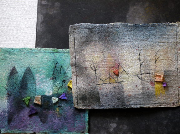 楮とパルプで漉いた紙に描いてますが色や絵の雰囲気は西洋的です。