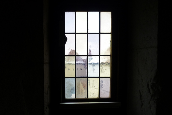 (アヌシー城の窓越し見えた不思議な街の風景)