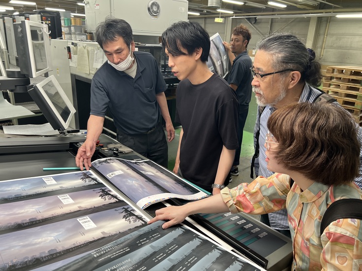 そこで、(株)ソノベの大内さんから、表紙カバーの色味を印刷工場で確認する