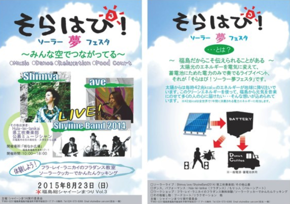 ライブステージ電力にソーラーパネルで発電した電気のみを使用する、新たな音楽イベントを、2015年8月23日、福島市”街なか広場”で開催したい!