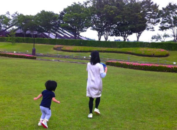 (公園で遊ぶ娘の様子。子供たちが思いっきり羽ばたける社会を私たちがつくります。)