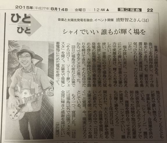 さらに、本日14日、朝日新聞の「ひと」のコーナーに実行委員長清野智之の特集記事が掲載されました。