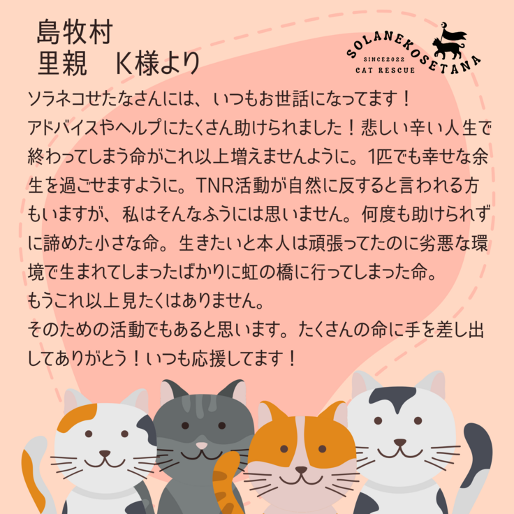 それだけではなく、猫たちの幸せ報告など