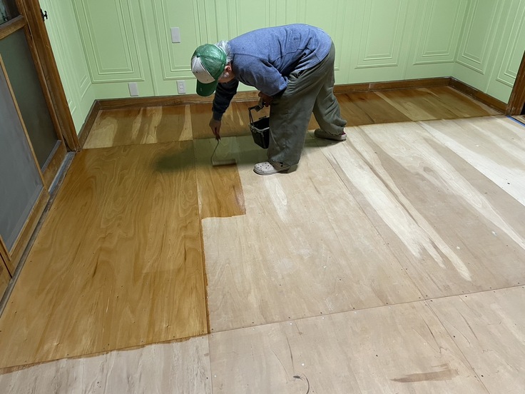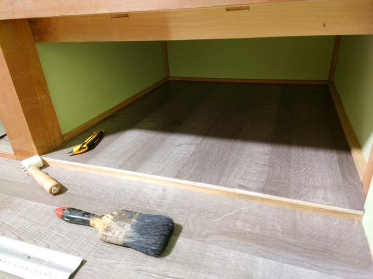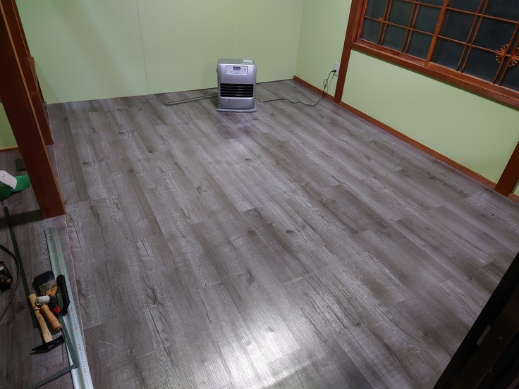 床貼り当初は子供の工作並みに手が糊だらけ😆