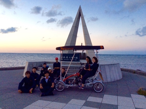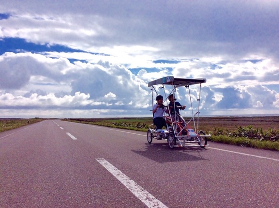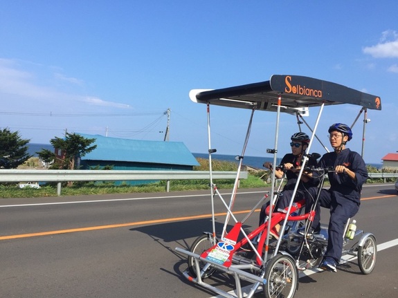 走行中に沿道の方々に応援をいただき大きな励みとなりました。ありがとうございます。今後はこの4輪自転車を活用した観光地での利用法を探っていきます。