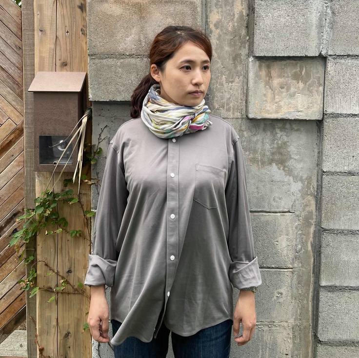 例えばこのシャツ。すごいスピードでボタンは止めやすく、横着な人も、手に麻痺がある人も、めんどくさがりさんにはとてもおすすめのデザインにしました。素材は、さらっと感があって、伸びやすく、しわになりにくく、着やすいものを選んでいます。