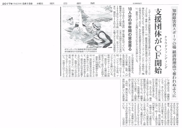 朝日新聞「知的障害者のスポーツ・・奪われぬように」