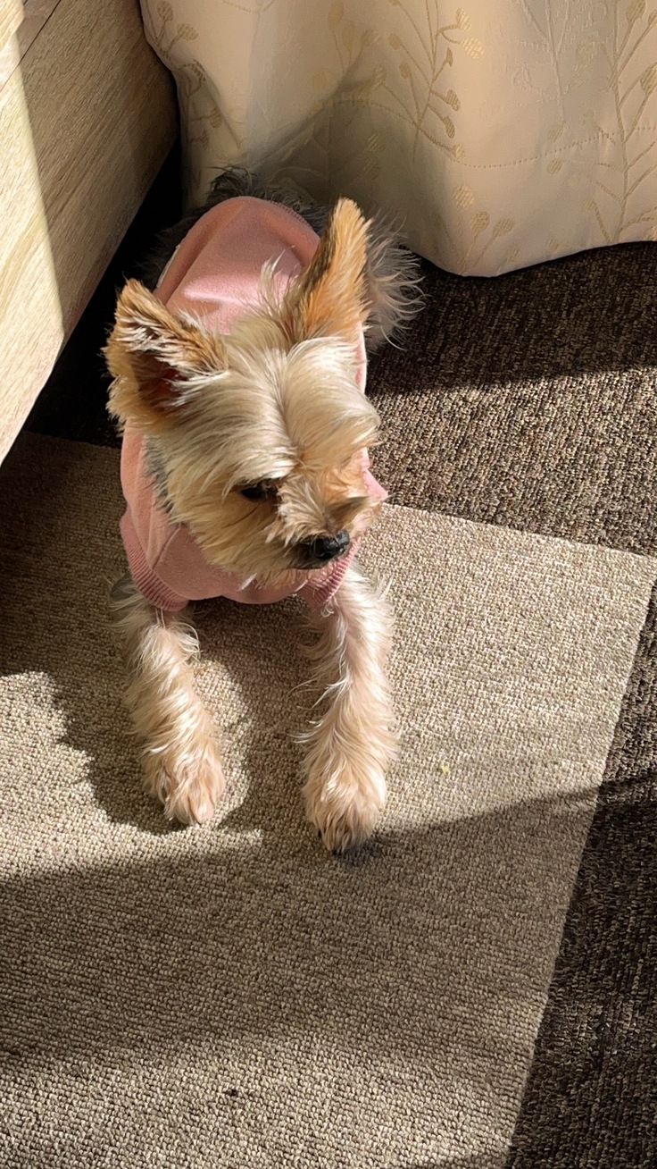 散歩に行く準備をしている時、嬉しくてピョンピョン飛び跳ねていたのにその数分後には・・・。