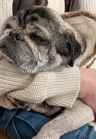 飼い主さんの生活が困窮し、更にご入院されたそうで、パグの一色くんがセンターに収容されました。