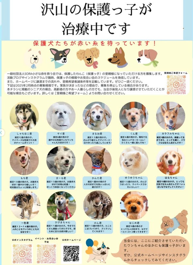 当会にいる保護っ子の中には、重篤な疾患がある子、高度な検査や手術が必要な子、投薬や通院が必要な子やシニア犬もいます。