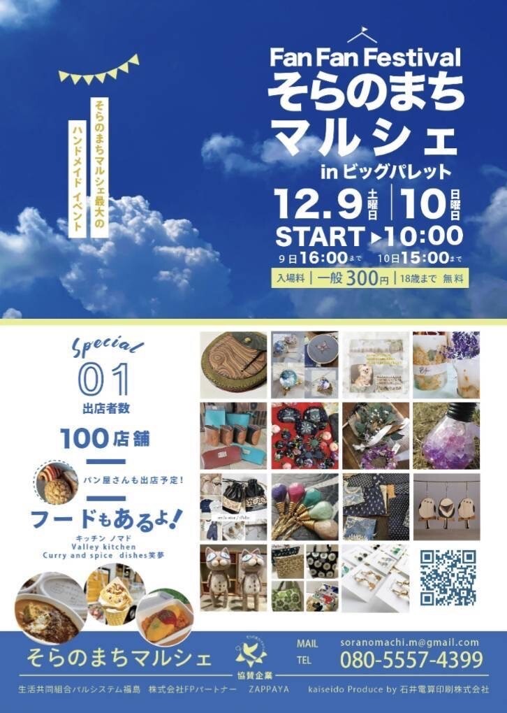 12月9日(土)は、福島県の郡山市にあるビックパレットふくしまで行われる、「そらのまちマルシェinビックパレット」に行ってきます♪