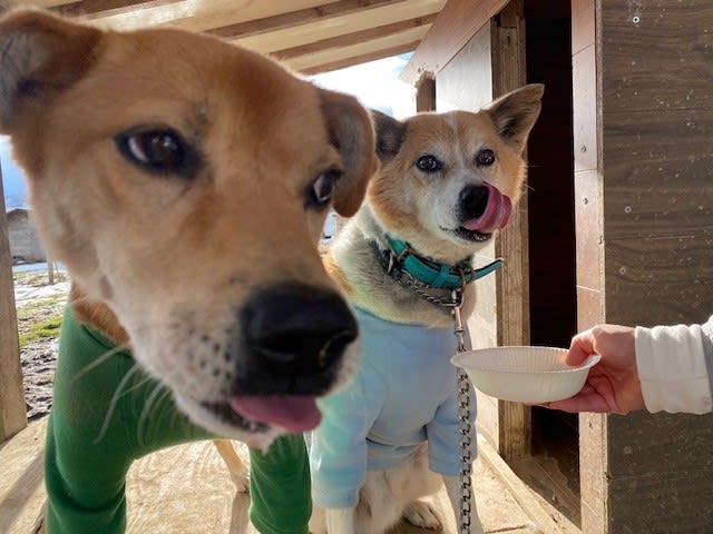 今日は特別に、普段食べられないおやつを犬猫たちに食べてもらいました