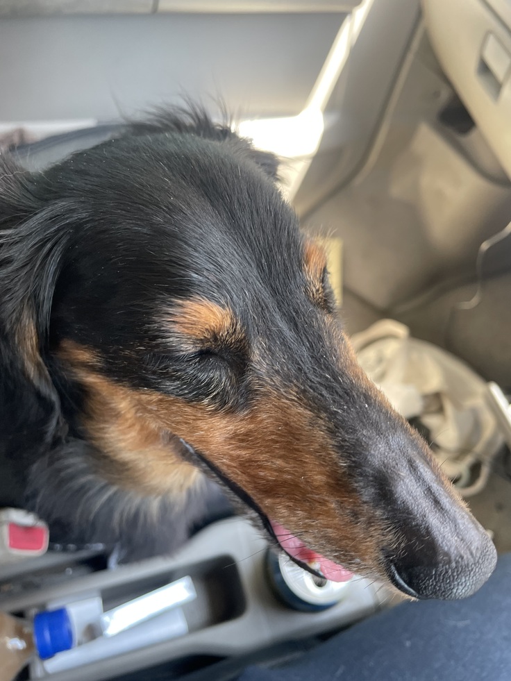 天気も良くて夏日なので車の中でクゥちゃん冷却中です