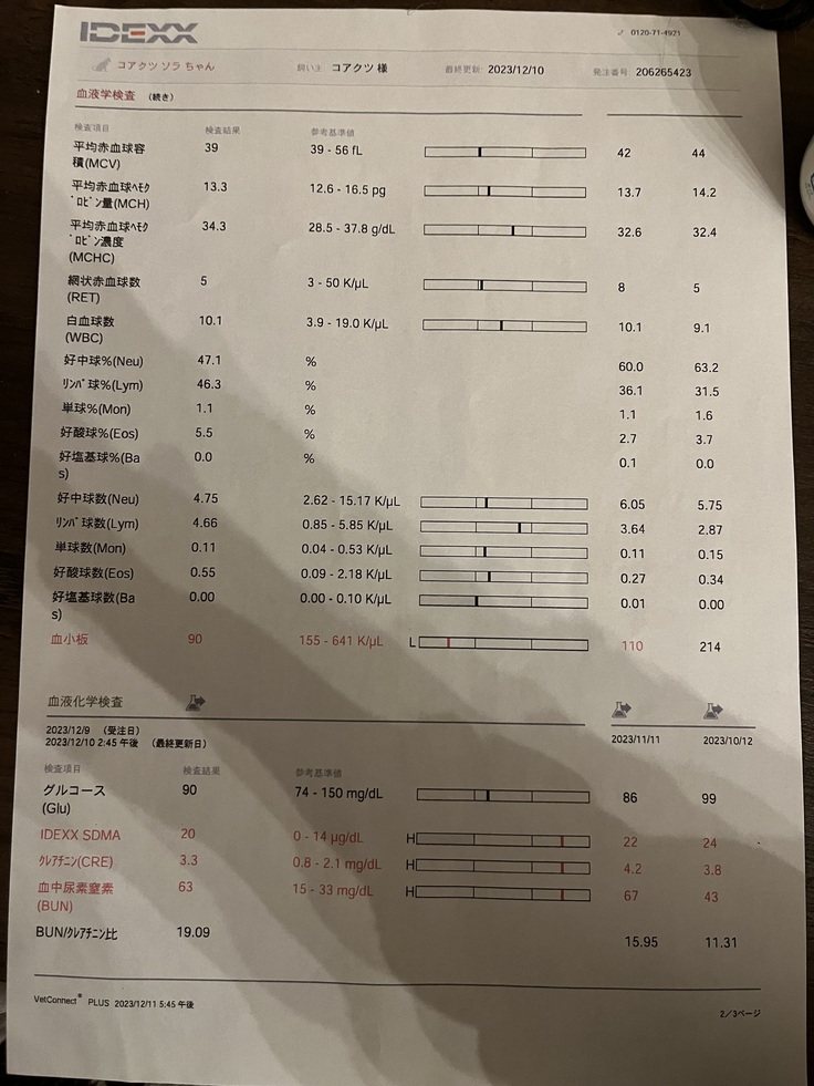 SDMA、CREの数値は下がったものの、BUNがほぼ横ばい状態。
