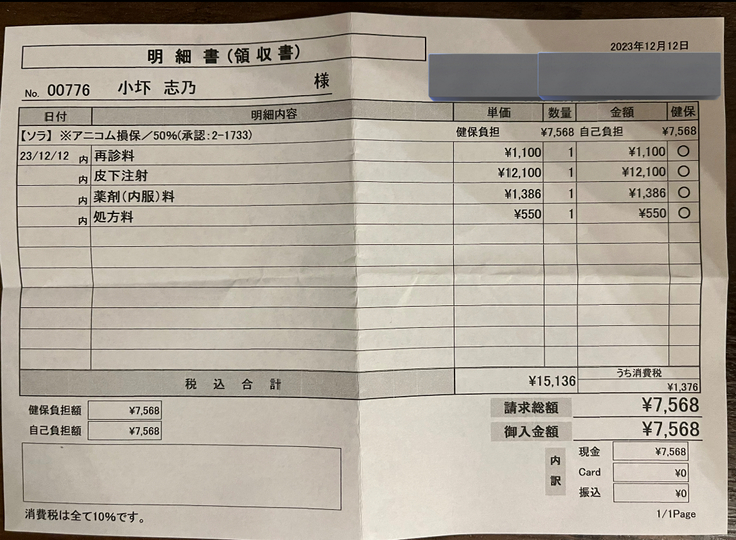 かかりつけの病院に血液検査結果を聞く為電話をし、翌日(12/12)病院へ行きました。