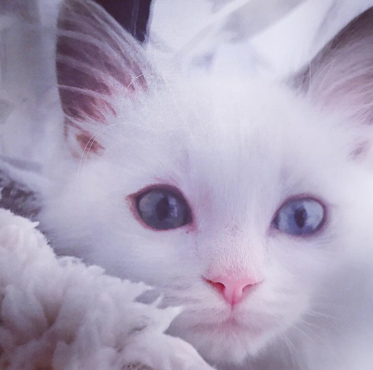 友人が気になる猫ちゃんを出してもらい、店員さんとお話ししている間に、その子の隣にいるちっちゃくて白い子猫に目が入りました。