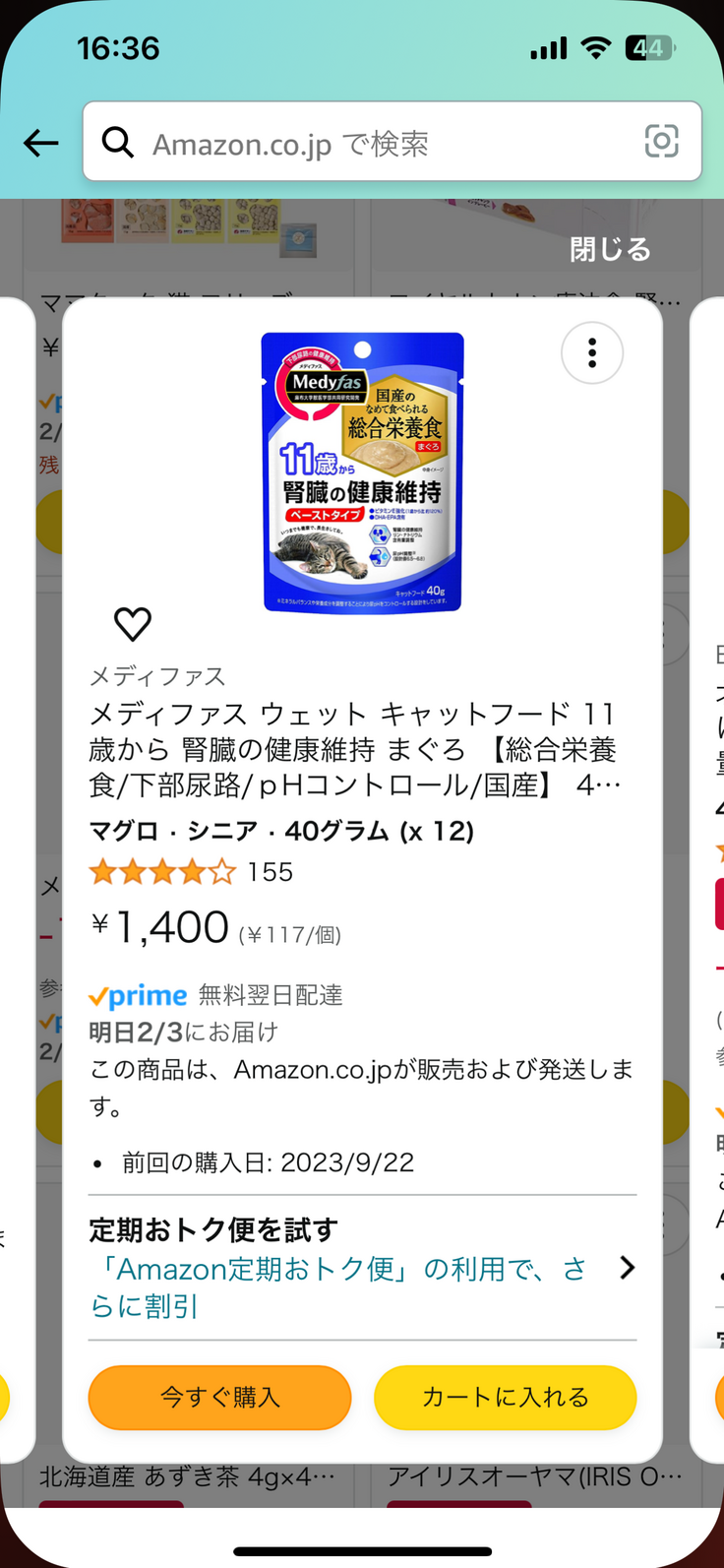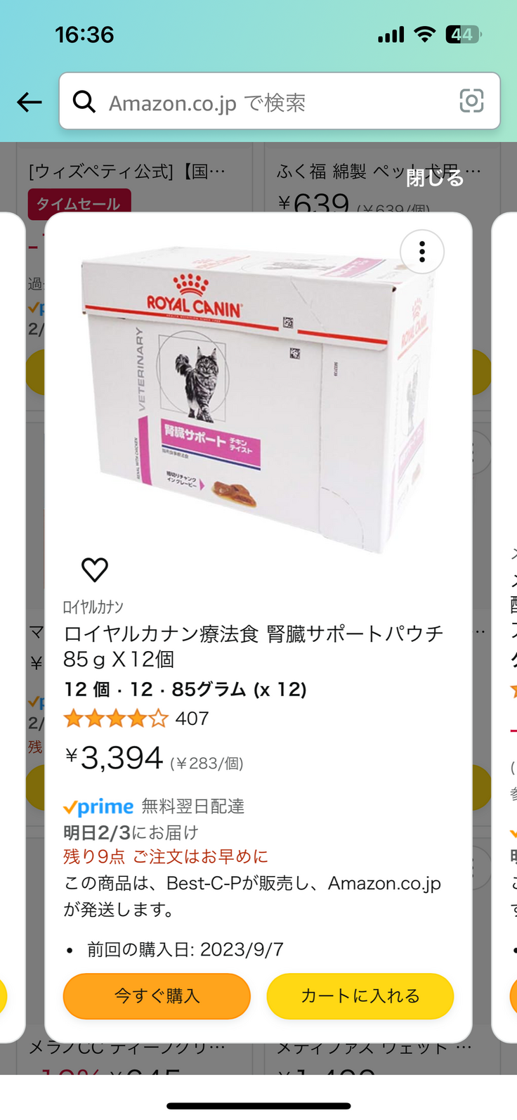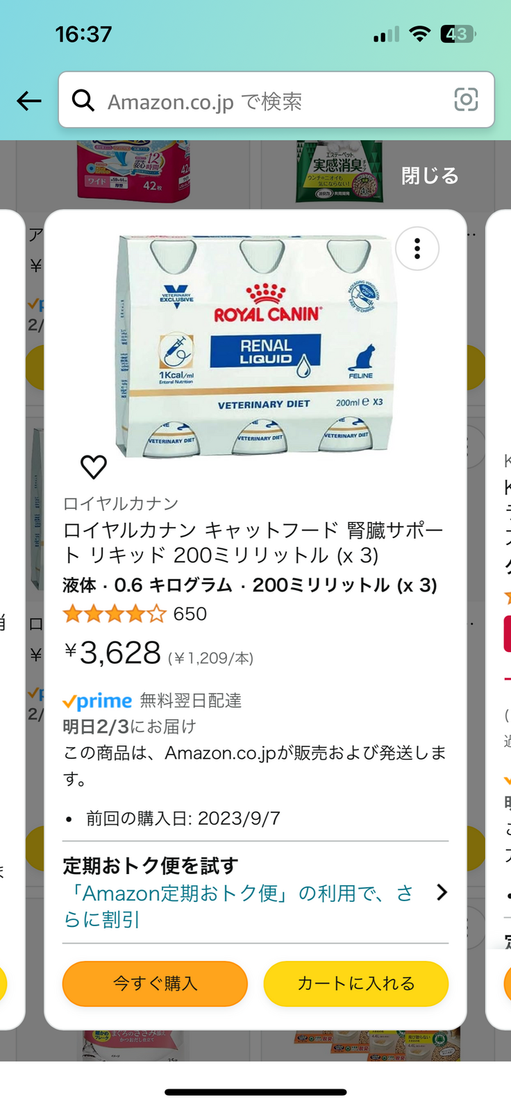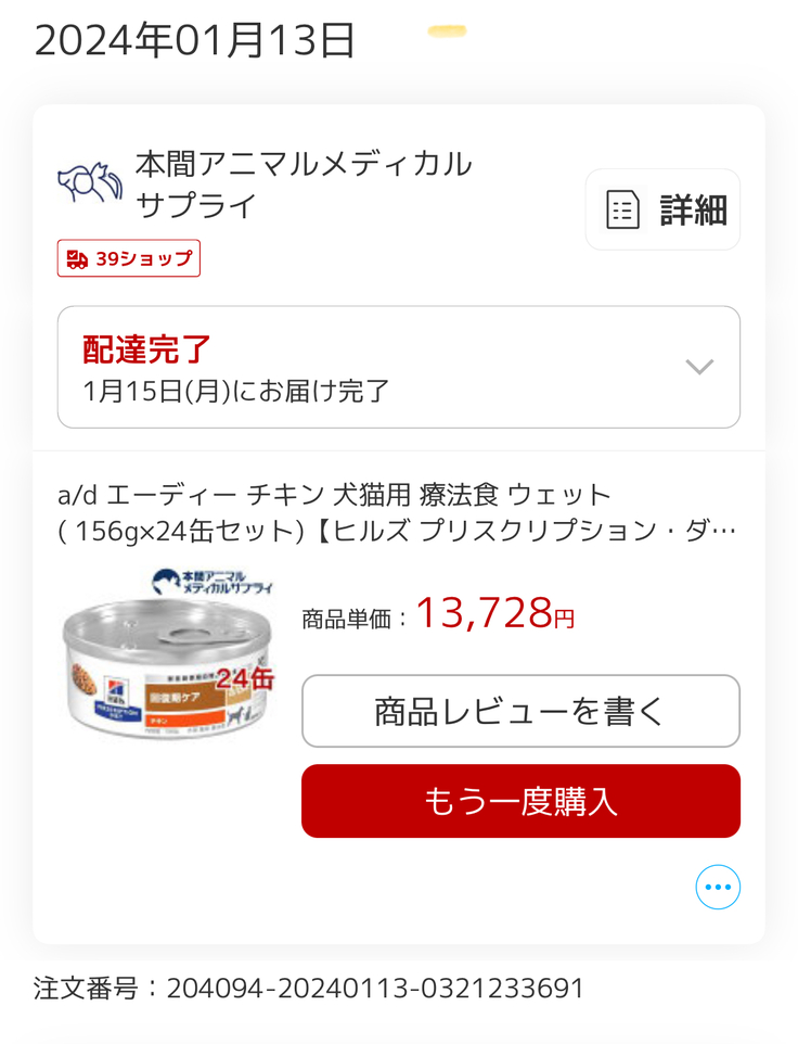 1缶/日あげていましたが、1月の血液検査時にBUNが上がったため、徐々に減らしています。